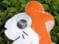 * brož ušitá z bílé a oranžové plsti plněná vatou.