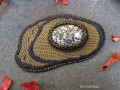 Jedinečné spojení klasické tradiční textilní techniky ručně šité krajky s korálkovou výšivkou a kabošonem jaspisu dalo vzniknout této unikátní broži ze série "Otisky".