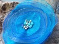 Organzová brož se středem pošitým korálky. Průměr brože cca 8 cm, brožové zapínání.