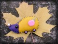 *brož ušitá z barevné plsti, zdobená korálky a vycpaná vatou.