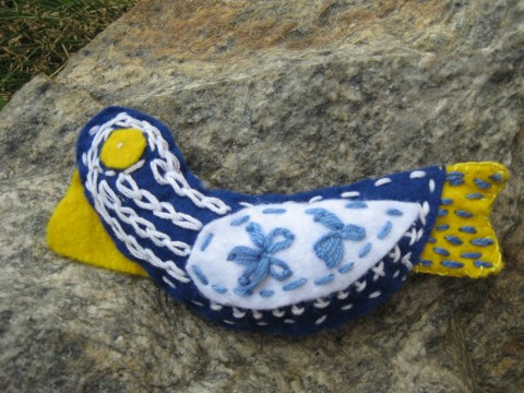 Filcová brož je ručně vyšívaná, plněná dutým vláknem. Je vhodná jako ozdoba na oblečení, tašky, látkové kabelky, batohy, na záclony jako jarní výzdoba apod. Vel. cca 12 cm.