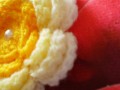 Háčkovaná kytička z akrylové příze - brož se zapínáním na brožový můstek. V odstínech oranžová, žlutá, smetanová a bílá.