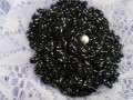 Háčkovaná černostříbrná kytička z akrylové příze s metalickým vláknem - brož se zapínáním na brožový můstek a s našitou perličkou. Ozdobí šaty, šálu, sako, nebo čepici.