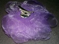 Brož - spona ve tvaru květu, vyrobená z "květinových plátků" organzy barvy světle fialové, zdobená korálkem a fialovými pestíky, rozměry: průměr cca 10 cm, výška cca 4 cm.