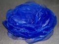 Brož - spona ve tvaru květu, vyrobená z "květinových plátků" organzy barvy námořnické modré, zdobená skleněnými korálky, rozměry: průměr cca 10 cm, výška cca 4 cm. Zapínání je začištěno kouskem filcu.