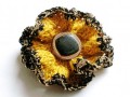 Háčkovaná brož z bavlěné příze svintage knoflíčkem v žlutozlaté barvě s černozlatým okrajem.