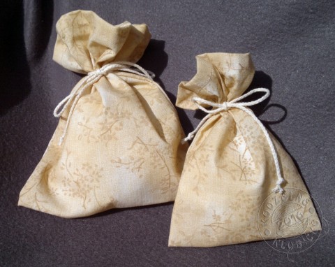 Šité sáčky z krásné látky 116g/m2, vzor drobných kvítků - bylinek tón v tónu, barva písková - okrová, složení 100% bavlna, opatřený šňůrkou na zavazování.