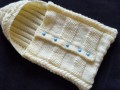 Dětský ručně pletený fusak s kapucí pro miminka 0-4 měsíce, z jemné akrylové příze. Zapínání po stranách na knoflíky.