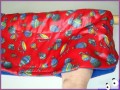 Ušitý z šusťákoviny, prošívky a flízu uvnitř, aby hřál na ruce.