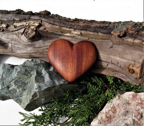 Srdíčko vyřezané a vytvarované z masívního mahagonového materiálu, lze použít jako doplněk k dárku, nebo i jako magnetku.