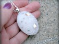 * kovové lůžko (4 x 3 cm) zavěšené na řetízku stříbrné barvy (cca 42 cm, zapínání na karabinku + prodluž. řetízek)