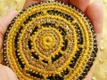 Jemně obháčkované zrcátko z bavlnek ve zlatočerné barvě a doplněno zlatými korálky....
