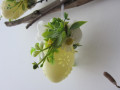 Trvanlivý závěs na plastových vejcích s madeirovou úpravou - vajíčka: zdobená látkovými a umělými rostlinami. Na každém vajíčku jsou čtyři větší květy: ranunculus bílý, narcis žlutobílý, sukulent zelený a kopr žlutý, doplněny zelení a drobnými bílými, žlutými kvítky a bíložlutým heřmánkem ...