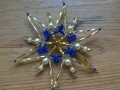 Hvězdičky jsou zhotoveny ze zlatých trubiček, perliček a doplněny korálky různých barev. Doplňující barva záleží na výběru. Stejné hvězdičky mohou být i na stříbrném základě. Krásná ozdoba na vánoční stromeček, ale i na okno, záclonu, zavěsit do prostoru, atd. Cena je za jeden kus. Možnost osobního předání.