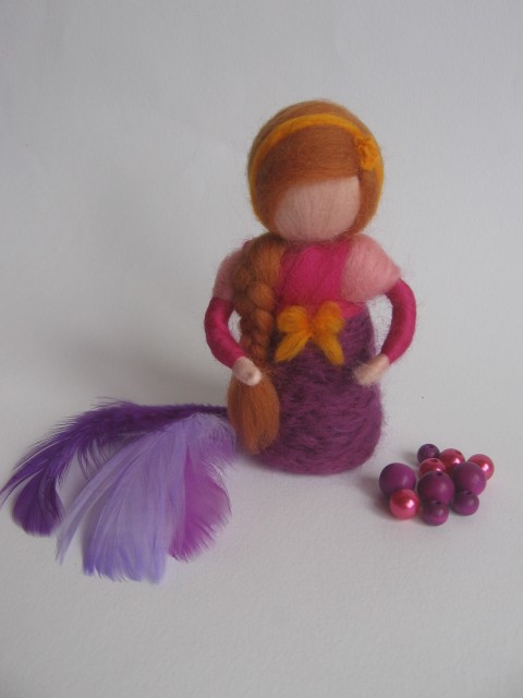 Panenka je vyrobena z barveného ovčího rouna metodou suchého plstění.