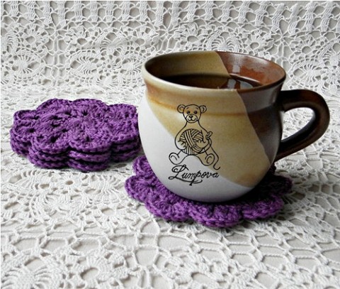 Ručně háčkovaná podložka pod hrnek. Malý dáreček, který potěší. Háčkované podložky pod hrnečky, vázičky a sošky. Podkafíčko je ze 100% bavlněné příze.