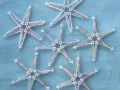 Sada něžně vypadajících vánočních ozdob - 6 kusů - je vyrobena ze skleněných korálků převážně bílé a stříbrné barvy technikou drátování. Jednotlivé ozdobičky mají velikost přibližně 8,5cm. Uvedená cena je za zobrazených šest kusů. Není vhodné do venkovního prostředí.
