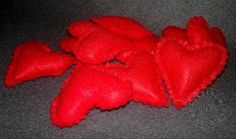 Ručně šité srdíčko z červeného filcu/plsti, plněné dutým vláknem.