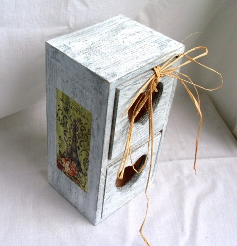 zdobená šedou patinou a decoupage papírem