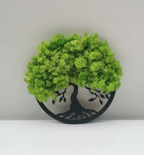 Strom života je vyrobený z přírodních materiálů a to ze stabilizovaného sobího mechu a dřevěné překližky.