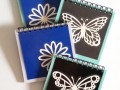 bloček,zápisníček-9cm x 9cm-bílé a barevné listy-cca:50ks(100 stránek),celé vázané černou kovovou vazbou,