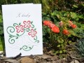 Přání je vyrobeno technikou zvanou nitěná grafika. Na jeho výrobu jsem použila tvrdý papír (formát A5) a bavlnky.