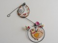 Drátovaný závěs ptáčka a vajíčka je zhotoven z černého žíhaného drátu,keramického ptáčka a skleněných korálků . Délka dekorace je 35 cm. Průměr kolečka je 8 cm a velikost vajíčka 7 cm.