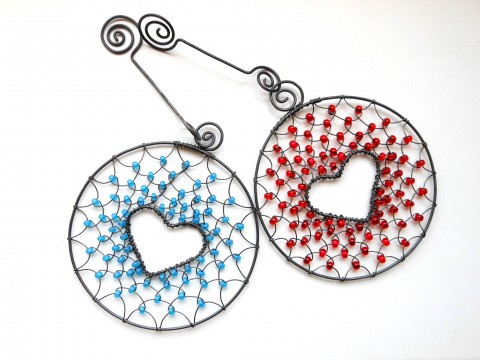 Srdíčko je vyrobeno z černého žíhaného drátu, kteřý je dozdoben skleněnými korálky. Průměr kolečka je cca 9cm. Lze jej zavěsit kamkoliv...