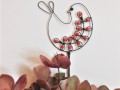 Zápich je vyroben ze žíhaného drátu, který je dozdoben korálky. Velikost ptáčka je cca 10x12cm, délka celého zápichu je cca37cm. Zápich můžete použít nejen do květináčů, ale i do suchých vazeb. Cena za kus.