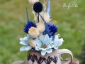 Malý malovaný krásný keramický hrneček se sušinou mix a látkovými květy. Vel na výšku je 24 cm, na délku je 13 cm.