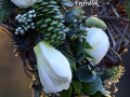 Proutěné srdce o průměru cca 31 cm s očkem na zavěšení s luxusní umělou magnolií na větvi a ,,suchými-dokonalá imitace),, umělými růžemi , jehličím , šiškami a bobulkami.
