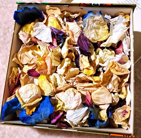 Voňavá směs okvětních plátků růží (pro barevnou rozmanitost doplněná v menším množství i jinými zahradními květinkami)