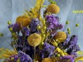 Originální sušinová dekorace v obalu z kůry. (limonka, oves, kraspédie, statice). Vel. na výšku je 37 cm/ průměr 27 cm.