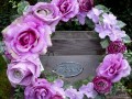 Věnec s růžovo fialovými květy
