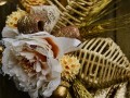 Vánoční věneček s krajkovou růží, zlaceným ječmenem, žaludy, jmelím a ostatní sušinou. Velikost je 25 cm a s aranží celkem 35 cm.