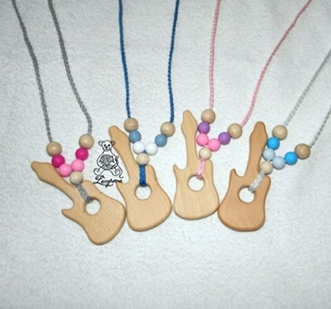 Materiál - dřevěné korálky, dřevěné kousátko, korálky - potravinářský silikon, háčkovaná šnůrka - vše bez chemických úprav