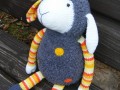 Háčkovaná ovečka Ibi v šedej farbe s farebnými rúčkami a nožičkami, bezpečnostné oči čierne. Vyrástla do výšky cca 40 cm a je ozdobená filcovými kolieskami. Vyplnená polyesterovým vláknom. Použitý materiál 100% micropolyester na telíčku a hlavičke a zvyšok 100% bavlna.