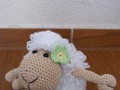 Háčkovaná ovečka, ktorá nám vyrástla iba do výšky cca 18 cm, materiál 100% bavlna, smyčky akryl. Za uškom ma kvietoček. Očičká čierne bezpečnostné.