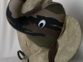 Vtipný zavazovací polštářek šitý na přání ze 100% bavlny v kombinaci mramorové v barvě hnědá/khaki a "vojenské maskáčové", plněno dutým vláknem, bezpečnostní oči.