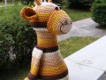 Háčkovaná žirafka Karamelka v hnedých farbách s hnedými bezpečnostnými očami, 100% bavlna, cca 40 cm vysoká, vyplnená polyesterovým vláknom.