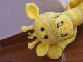 Háčkovaná žirafka Slniečková č. 2 v kombinácii žltých farieb, ktorá vyrástla do výšky cca 40 cm, tváričku jej zdobia bezpečnostné oči hnedé, vyplnená polyesterovým vláknom. Materiál 100% bavlna.