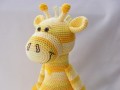 Háčkovaná žirafka Slniečko v kombinácii žltých farieb, ktorá vyrástla do výšky cca 40 cm, tváričku jej zdobia bezpečnostné oči hnedé, vyplnená polyesterovým vláknom. Telíčko jej zdobia malé žlté slniečka z textilného papiera. (materiál podobný filcu)