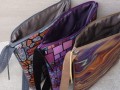 Na přední straně je bavlněný panel v odstínech oranžové, šedomodré, rezavé, fialové...