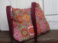 ušitá z bavlněné látky s motivem barevných oválků a vínové koženky