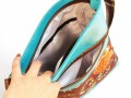 Zadní strana kabelky: tyrkysová koženka.