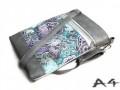 Na přední straně je praktická, plně funkční kapsa na zip z krásné dovozové látky, kterou lemuje stříbrný pásek. Látkový panel je silně vyztužené. Vnitřek kabelky je na zip, vypodšitý saténem a má ještě všitou kapsičku na doklady.