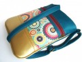 Použitá luxusní koženka je v odstínu zlaté a petrolejově modrozelené barvy.