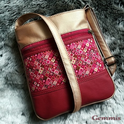 Použitá luxusní koženka je v odstínu temně červené a zlato-měděné barvy.