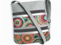 Na přední straně jsou dvě praktické, plně funkční kapsy na zip z krásné látky s motivem mandal , kterou lemují stříbrné pásky. Vnitřek kabelky je na zip, vypodšitý saténem a má ještě všitou kapsičku na doklady. Látkové panely jsou silně vyztužené.