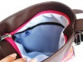 Na přední straně jsou dvě praktické, plně funkční kapsy na zip z krásné látky z dovozu s motivem bublinek, kterou lemují černé pásky. Látkové panely jsou vyztužené. Vnitřek kabelky je na zip, vypodšitý saténem a má ještě všitou kapsičku na doklady.Použitá koženka je v černé barvě.